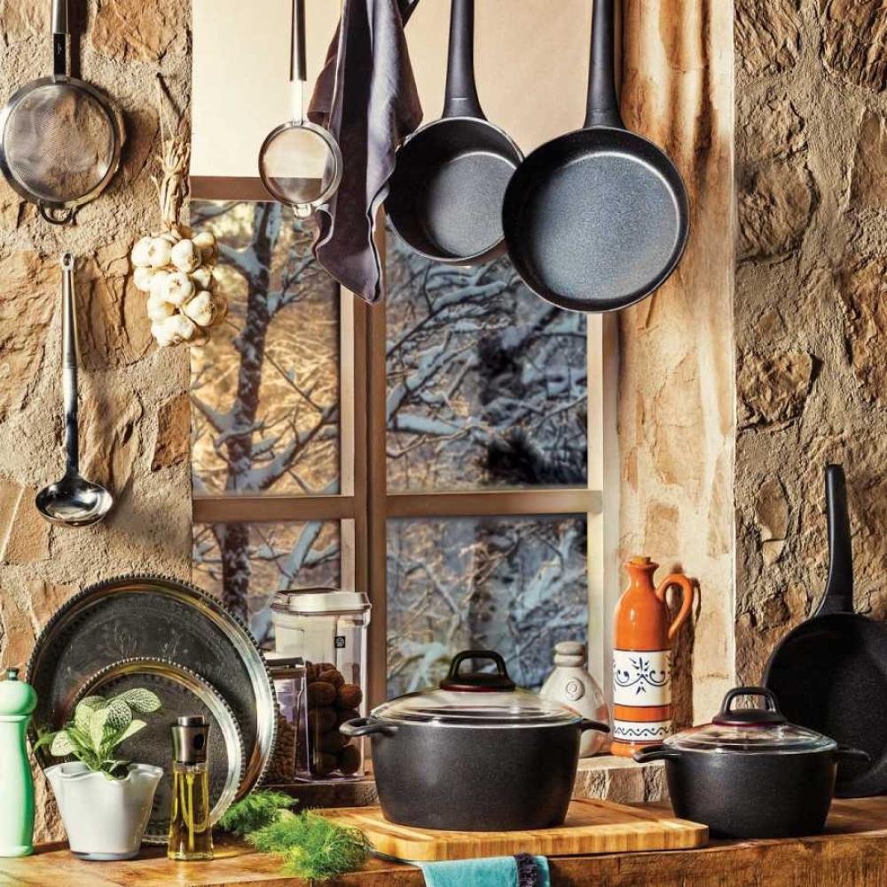 خط جوستو بلس مصنوع من مواد طبيعية قابلة لإعادة التدوير وتقنية صديقة للبيئة، ويصنع وجبات لذيذة باستخدام القليل جدًا من الزيت بفضل مقاومته الإضافية للخدش وطلاء PTFE الشبيه بالبركان وطلاء خارجي من السيليكون مقاوم لدرجات الحرارة العالية.