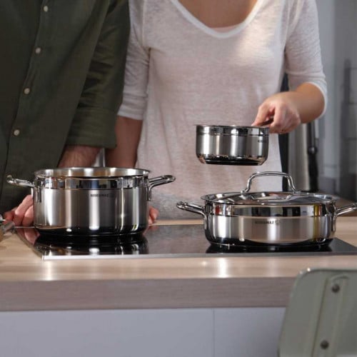 مقابض من الفولاذ المقاوم للصدأ جدا سميكة لمنع توصيل الحرارة وبالتالي تجنب احتراق اليدين