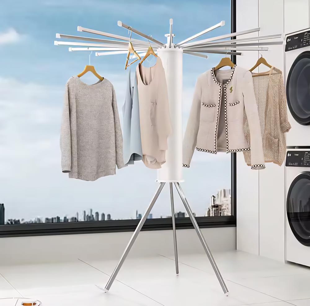 - يتميز بتصميم دوّار 360° وأذرع متعددة لتعليق كمية كبيرة من الملابس دون أخذ حيز.