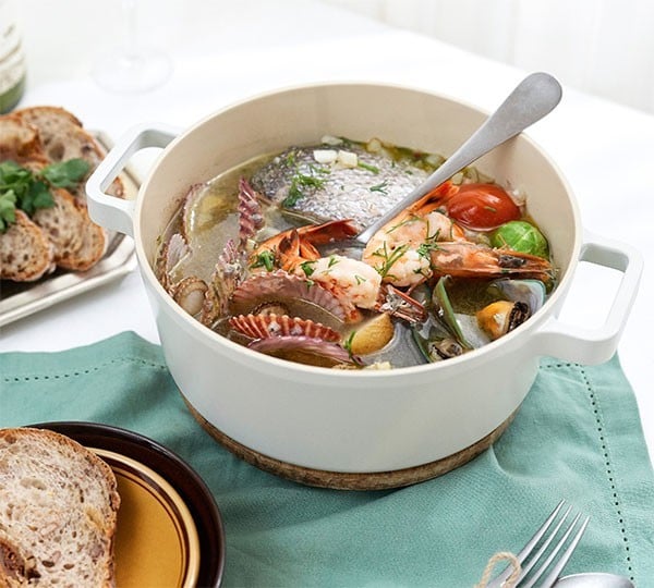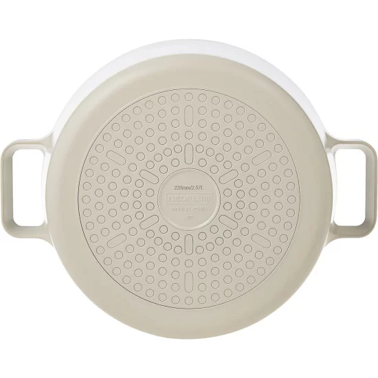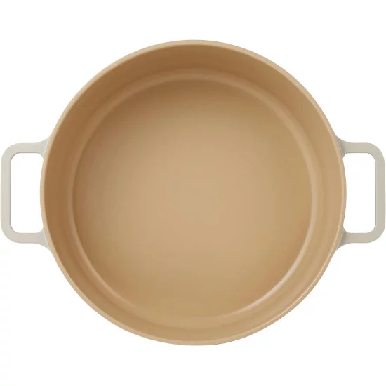- تصميم مستوحى من الطراز الإسكندنافي مع خطوط دائرية بسيطة، ومزيج ألوان دقيق من الأسطح الخارجية غير اللامعة ذات اللون الأبيض الفاتح وطلاء داخلي بلون رملي لامع، ومقبض بيضاوي خشبي غير قابل للانزلاق وغطاء علوي. حافة من السيليكون على الغطاء الزجاجي المقسى تتوافق مع اللون الخارجي للجسم وتغلق أواني الطهي بدقة وهدوء.